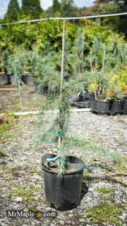 Cedrus deodara ‘Silver Splash’ Himalayan Cedar is a dazzling selection bringing a luminous touch to the landscape with its striking silver-blue foliage and graceful, semi-pendulous branching. Its unique side-sweeping branches create an elegant, architectural presence, making it a true statement piece in any garden. Growing 8–10 ft in 10 years, this distinctive cedar offers both beauty and structure without overwhelming the space. 'Silver Splash’ is perfect as a specimen tree, accent planting, or centerpiece in conifer collections.