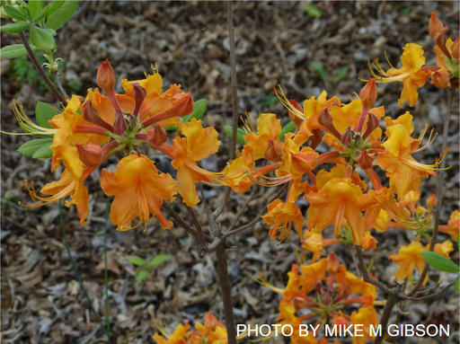 Rhododendron austrinum 'Aubie' Native Azalea Zones 7-9 Rhododendron austrinum × ‘Aubie’ is a deciduous hybrid native azalea that was mix wi...
