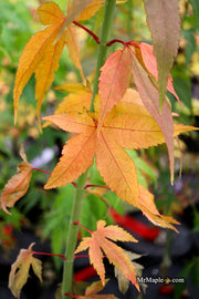 By late spring, the leaves on this Japanese maple mature to a pleasant olive green. Mid-summer flushes of new growth on 'Hot Chicken' are a bright red, making a great contrast with the older growth. In the autumn, 'Hot Chicken' will dazzle you with bright reds to olive green leaves. 'Hot Chicken' is sure to make a splash in your garden.