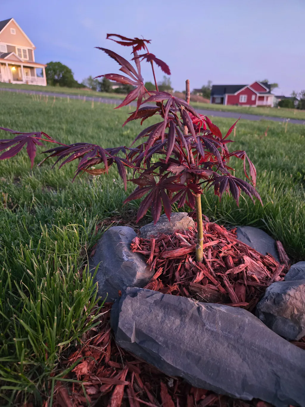 ‘Trompenburg’ is a very vigorous Japanese maple tree and can grow 9 to 10 inches a year. The height can reach 15-22 ft over time and the mature shape is vase-like in structure. This amazing cultivar adds a very exotic new look to any location. If you are looking for an upright red that has a lot of character, then ‘Trompenburg’ is a great choice for you.